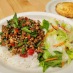 Choice of meat served with cucumbers, red onions, tomatoes, mint leaves, and Thai basil with spicy lime dressing over a bed of lettuce. Gluten-free.