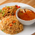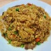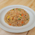 Stir-fried rice with peas, carrots, onions, tomatoes, and egg.