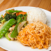 Lemongrass chicken, phad Thai noodles (no meat), and rice.