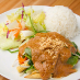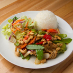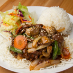Chicken, bell peppers, onions, cashew nuts, mushrooms, baby corn, snow peas, and celery stir-fried in a chili paste sauce.