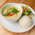 Zucchini, bell peppers and Thai basil leaves cooked in green curry and coconut milk. Gluten-free.