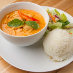 Tender chicken and bamboo shoots cooked in red curry and coconut milk. Gluten-free.