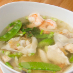 Shrimp and pork stuffed wontons with celery, onions, chicken, and shrimp in a flavored broth.